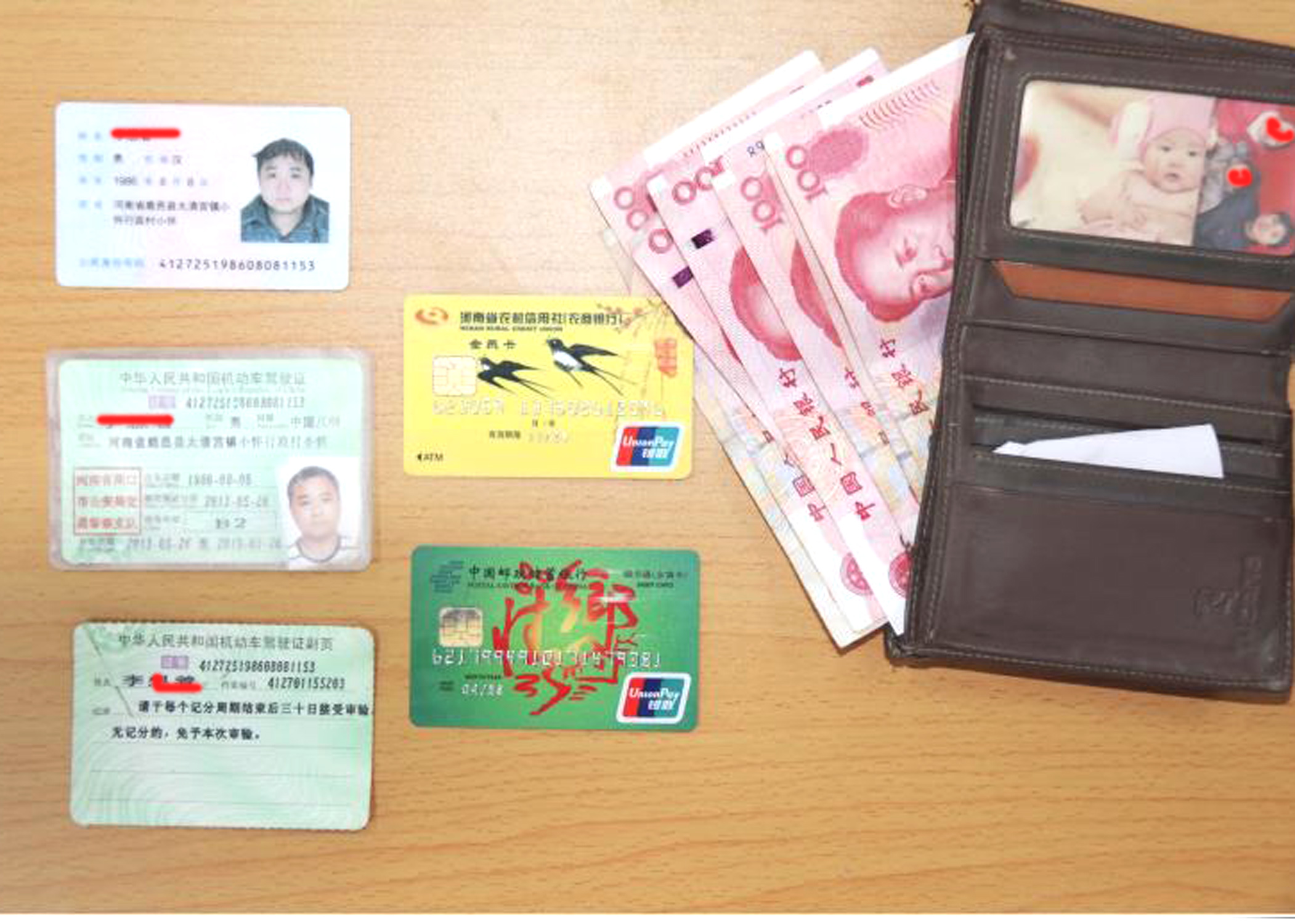 1月9日下午1時許,和往常一樣,鹿邑縣德源中學(xué)的師生們吃了午飯,匆忙進班。在初中教學(xué)樓五樓,九年級三班班主任尹紀偉被跑得氣喘吁吁學(xué)生張曾碩攔住了,他告訴尹老師,在來校的路上他撿到了一個錢包,里面有銀行卡、身份證、駕駛證等重要證卡和現(xiàn)金近干元……