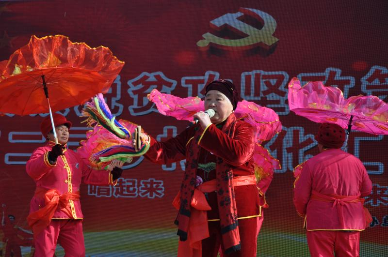 隨著基層公共文化服務(wù)建設(shè)的不斷深入、村級(jí)文化娛樂(lè)陣地的逐步改善,農(nóng)村群眾逐漸成為文化建設(shè)的主角。進(jìn)入臘月,商水縣各鄉(xiāng)鎮(zhèn)群眾紛紛自發(fā)組織多姿多彩的文化娛樂(lè)活動(dòng),紅紅火火迎新春,一場(chǎng)場(chǎng)豐富多彩的文化活動(dòng)讓群眾的精神生活越來(lái)越豐富。圖為商水縣一位年過(guò)六旬的老人在說(shuō)快板書(shū)《十九大精神放光芒》。 記者 付永奇 攝
