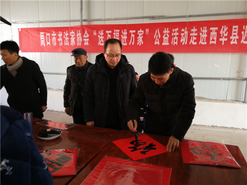 “‘迎新春走基層,進(jìn)萬家送萬福’活動已連續(xù)開展多年,今年市書協(xié)持續(xù)開展,就是為了進(jìn)一步弘揚(yáng)傳統(tǒng)文化,普及書法知識,助推扶貧攻堅,為周口這座文化名城建設(shè)作出應(yīng)有的貢獻(xiàn)?!敝芸谑袝鴧f(xié)主席王猛仁說。