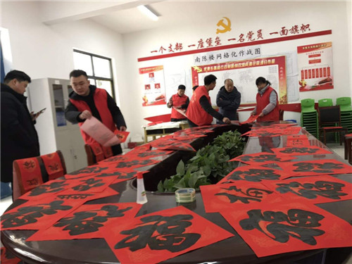 臨近新春佳節(jié),淮陽縣多家單位邀請書法家深入結對幫扶村開展新春送"福"到農(nóng)家送春聯(lián)活動,一幅幅春聯(lián)翰墨飄香,讓群眾贊不絕口,一幅幅春聯(lián)送去新春的祝福,讓原本寒風凌冽的冬日變得溫馨、喜慶。圖為縣住建局組織書法愛好志愿者在朱集鄉(xiāng)南陳樓開展送春聯(lián)活動,志愿者現(xiàn)場揮毫潑墨,書寫新春對聯(lián),受到廣大群眾的歡迎。