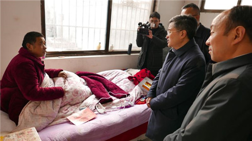 隨后,皇甫立新、劉國(guó)慶一行來(lái)到槐店鎮(zhèn)高營(yíng)行政村,看望慰問(wèn)了困難黨員高功命、勞模高延旭、困難群眾高四清,給他們送去了慰問(wèn)品和慰問(wèn)金,向他們致以新春的問(wèn)候和祝福。并叮囑隨行人員要時(shí)刻把老黨員、勞模、困難群眾的冷暖放在心上,加大保障力度,及時(shí)了解他們的生產(chǎn)生活所需,積極主動(dòng)幫助他們解決實(shí)際困難,努力提高他們的生活水平和質(zhì)量,把黨和政府的關(guān)懷真正落到實(shí)處,使他們真真切切感受到黨和政府的溫暖。