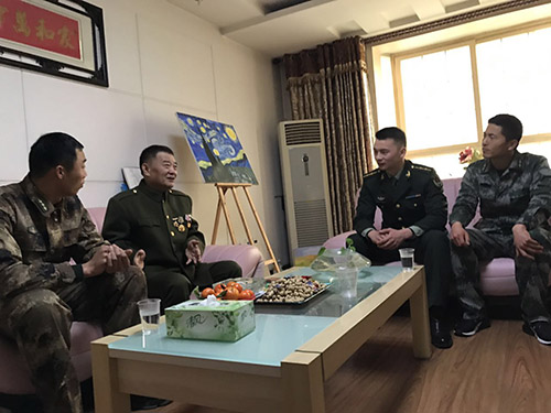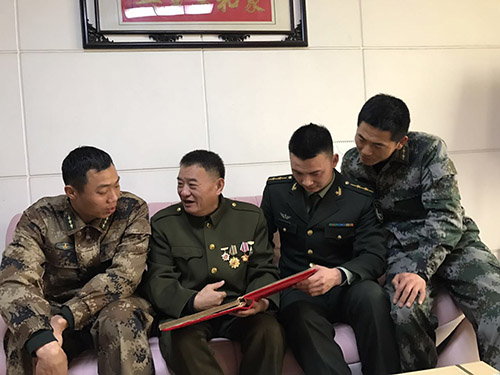 本報(bào)訊  追憶崢嶸歲月,鐵血軍魂永在。2月3日上午,春節(jié)的腳步越來越近,空氣中彌漫著節(jié)日喜慶的氣息。3名返鄉(xiāng)探親的“周口好兵”、一等功臣柳東坡、劉威、崔二偉相約慕名來到被中央軍委授予“英雄步談機(jī)員”榮譽(yù)稱號(hào)、一等功臣海水干家中,聆聽老英雄講述當(dāng)年的戰(zhàn)斗事跡,上了一堂生動(dòng)的國防教育課。