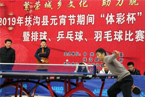2月17日上午,元宵佳節(jié)即將來臨之際,在全縣脫貧攻堅(jiān)沖刺的關(guān)鍵時(shí)期,扶溝縣2019年元宵節(jié)“體彩杯”全民健身展示暨排球、乒乓球、羽毛球比賽活動(dòng)在縣體育館隆重開幕?;顒?dòng)旨在豐富全縣廣大人民群眾的文化生活,助力脫貧攻堅(jiān),為實(shí)現(xiàn)“五個(gè)扶溝”增光添彩??h委常委、宣傳部長(zhǎng)馬昭才,副縣長(zhǎng)吳興華等出席開幕式??h委宣傳部副部長(zhǎng)張根主持開幕式。