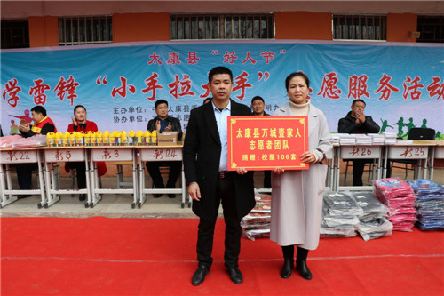 上午9時10分,隨著兩名小主持人婁婷涵和許家輝走上舞臺,太康縣“好人節(jié)”暨學(xué)雷鋒“小手拉大手”志愿服務(wù)活動”活動正式拉開序幕。舞臺上,精彩的武術(shù)表演、優(yōu)美的歌曲、舞蹈、動人的勵志手語舞等節(jié)目,讓觀眾大飽眼福,贊嘆不已。同時,該縣萬城壹家人團隊還為新店鋪小學(xué)的學(xué)生們帶來了106套、價值2萬余元的新校服,以及多套組合衣柜。