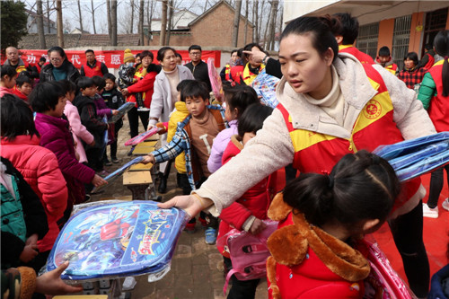 精彩的武術(shù),漂亮的書包、校服……3月3日,太康縣王集鄉(xiāng)新店鋪小學(xué)106名學(xué)生每人收到了一份“大禮包”。當日,太康縣委宣傳部和縣文明辦在新店鋪村舉辦太康縣“好人節(jié)”暨學(xué)雷鋒“小手拉大手”志愿服務(wù)活動,30多名志愿者為學(xué)生們發(fā)放了書包、文具和校服等,并深入貧困戶家中幫助打掃庭院衛(wèi)生,受到村民的一致好評。