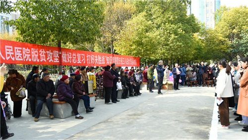 運(yùn)動(dòng)會(huì)共設(shè)四個(gè)項(xiàng)目:你演我猜、踩氣球、搶凳子和蒙眼擊鼓。講究默契的你演我猜,團(tuán)隊(duì)協(xié)作的踩氣球,笑料百出的蒙眼擊鼓,讓整個(gè)賽場(chǎng)充滿著歡聲笑語。激烈的比賽也引來了患者及家屬的圍觀,他們也被這歡樂的氣氛感染,臉上綻放出了笑容。在競(jìng)爭(zhēng)激烈的搶凳子比賽中,主持人加入了知識(shí)問答環(huán)節(jié),沒搶到凳子的要回答主持人提出的扶貧措施問題,隨著一個(gè)個(gè)參賽者被淘汰,醫(yī)院的各項(xiàng)扶貧措施也給圍觀者們留下了深刻的印象。