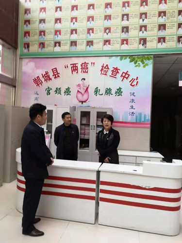 近日,鄲城縣副縣長肖煒、縣衛(wèi)計委主任付登霄一行,到鄲城縣婦幼保健院檢查指導“兩癌”免費篩查工作,該院院長亢國良、院工會主席楊敏陪同檢查。
