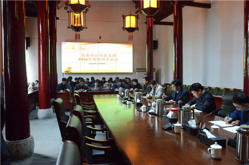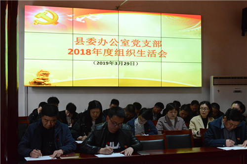 3月29日下午,鹿邑縣委辦公室黨支部召開(kāi)2018年度組織生活會(huì)并開(kāi)展民主評(píng)議黨員活動(dòng)??h委書(shū)記梁建松,縣委常委、辦公室主任宋濤以一名普通黨員身份參加會(huì)議。縣委辦公室機(jī)關(guān)全體同志參加會(huì)議。