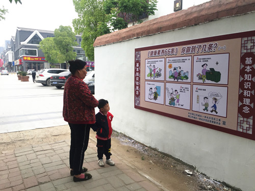 “文化墻既美化了環(huán)境,又能給我們老年人提供一些養(yǎng)生的建議,領(lǐng)導(dǎo)的想法好嘞很著呢!”家住馨麗康城63歲的趙姓居民在文化墻前由衷地發(fā)出了感慨,“大街上的宣傳標(biāo)語(yǔ),商店電子屏上的標(biāo)語(yǔ),街道上不停地清掃灑水,學(xué)校給學(xué)生發(fā)的宣傳手冊(cè),現(xiàn)在,大人小孩都知道創(chuàng)建衛(wèi)生城市了,環(huán)保意識(shí)也增強(qiáng)了,我的小孫子吃完的果凍盒,不見(jiàn)垃圾桶就一直拿在手里舍不得扔了。”