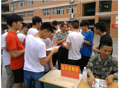 5月25日,淮陽縣征兵政策宣講團進校入班,對全縣六所高中學校開展宣講活動。效果明顯,當場有參軍意向高學歷青年報名,人數成倍增長,周口軍分區(qū)副司令員薛振喜看到這一喜人的成果后說:“大學生征兵政策宣傳進村入戶進校園入班級這個做法好。”