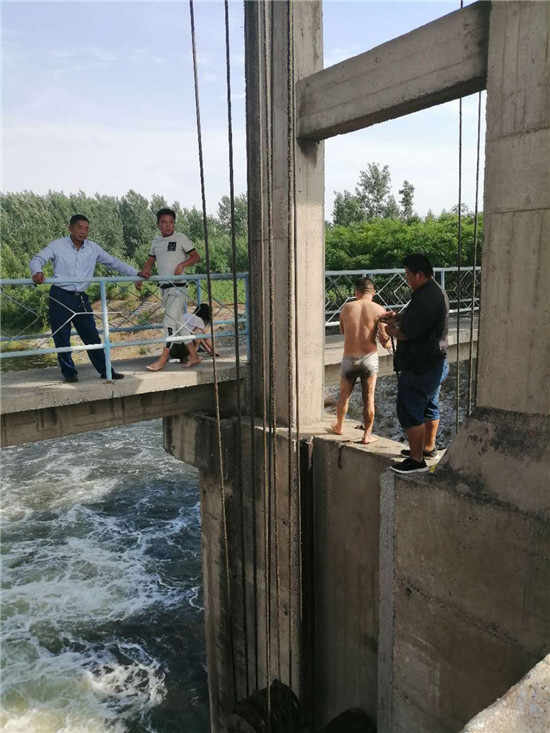 黃興龍邊大聲對(duì)青年男子說“堅(jiān)持住,我去拿工具”,邊向100多米外的閘管所跑去。參加過縣水利局預(yù)防未成年人溺亡培訓(xùn)學(xué)習(xí)的所長(zhǎng)劉浩和職工魏全心、王相等聽到喊聲,立即從辦公室拿來繩索、長(zhǎng)竹竿等救援設(shè)備,和黃興龍一起跑向出事地點(diǎn)。