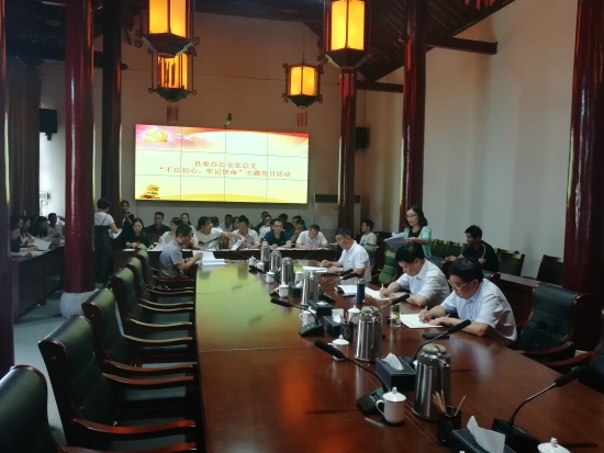6月25日下午,鹿邑縣委辦公室黨總支開(kāi)展“不忘初心、牢記使命”主題黨日活動(dòng)??h委書(shū)記梁建松,縣委常委、辦公室主任侯自峰以普通黨員身份參加活動(dòng),并帶頭繳納了黨費(fèi)??h委辦公室常務(wù)副主任、黨總支書(shū)記胥茂森主持主題黨日活動(dòng)??h委辦公室全體黨員參加活動(dòng)。