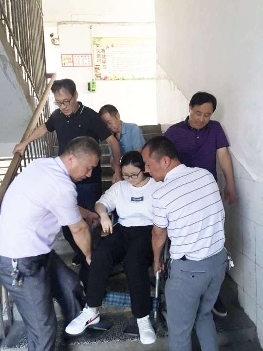 “考慮到她行動(dòng)不便,我們適當(dāng)?shù)卣{(diào)整了桌子之間的距離?!绷_明中表示,兩天來(lái),晉淼在實(shí)驗(yàn)中學(xué)考點(diǎn)服務(wù)工作人員的幫助下,從一樓抬進(jìn)三樓考場(chǎng)。每場(chǎng)考場(chǎng)結(jié)束后,考點(diǎn)工作人員又把她從三樓抬下來(lái),推到家長(zhǎng)身邊。