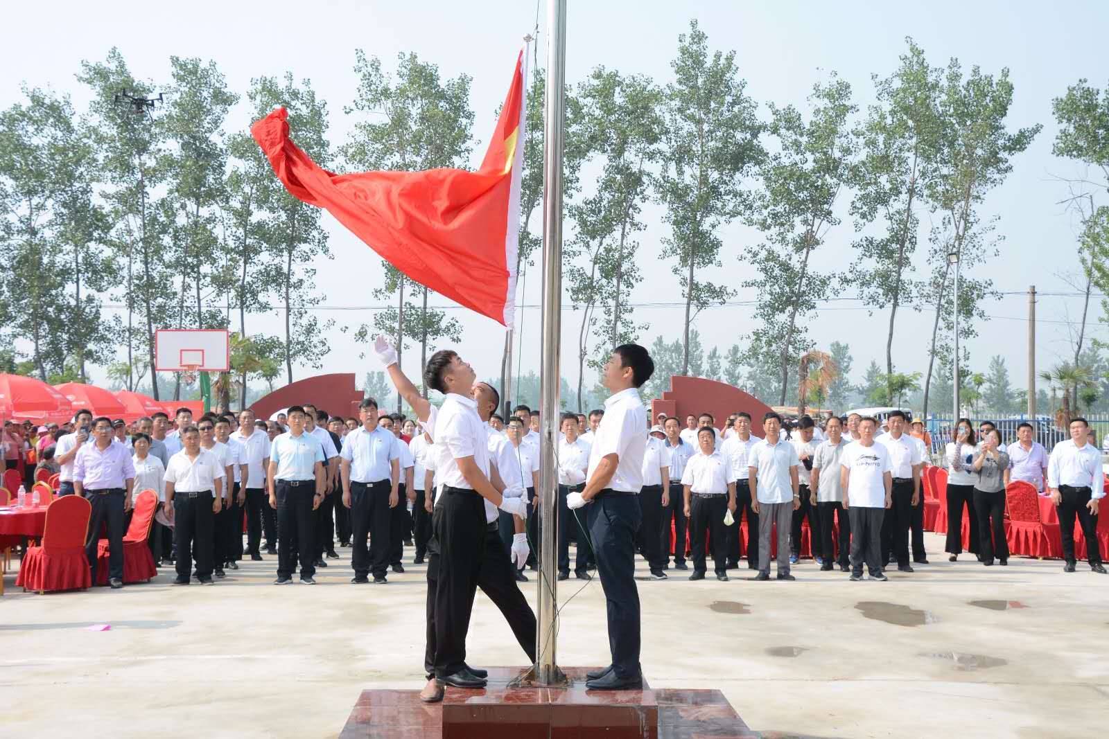 活動(dòng)在莊嚴(yán)的升國(guó)旗儀式中拉開(kāi)帷幕。由紀(jì)莊黨支部護(hù)旗手昂首闊步,迎著朝陽(yáng)、護(hù)著國(guó)旗走向升旗臺(tái),在場(chǎng)全體黨員、干部、群眾注視下,伴隨著震撼人心、氣勢(shì)磅礴的國(guó)歌完成了升旗儀式。