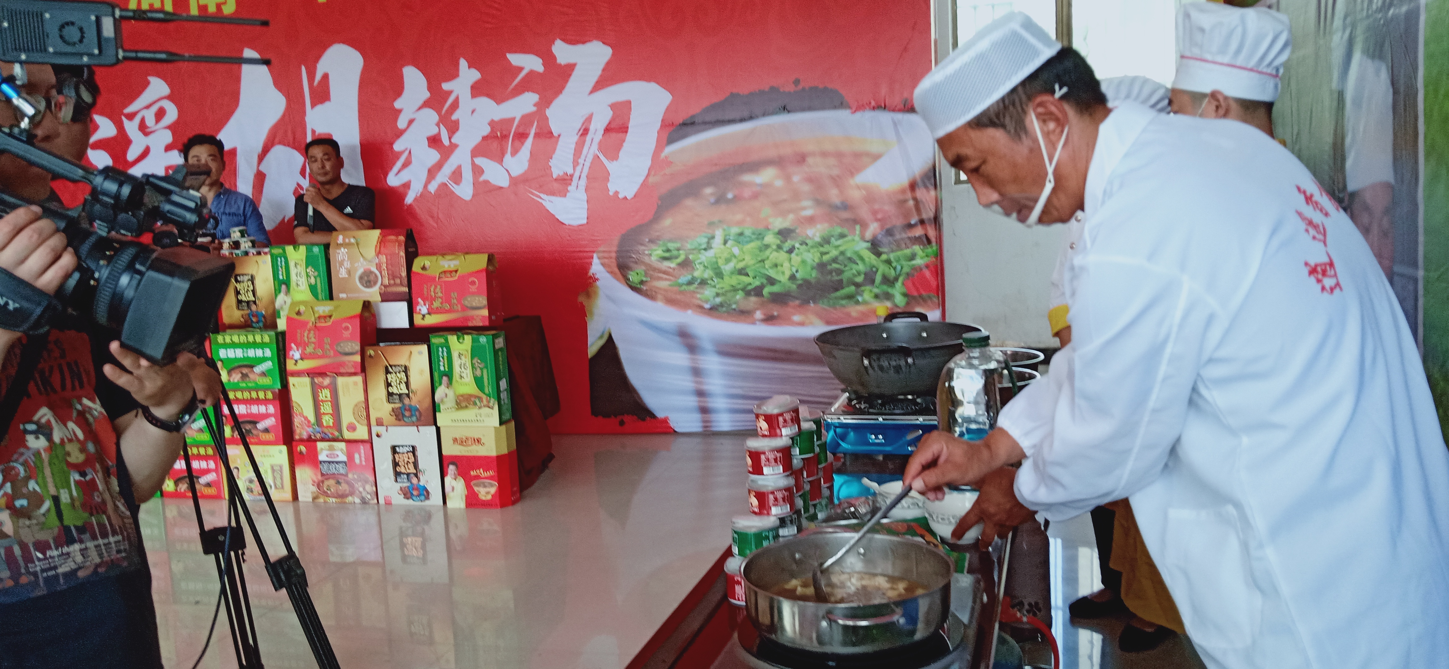 當(dāng)日下午14時至16時,“帶你尋味、西華特色”淘寶直播胡辣湯專場,在西華縣逍遙鎮(zhèn)政府舉辦。來自高群生、逍遙香、京遙、老楊家四家胡辣湯企業(yè)參加了直播活動。四家胡辣湯企業(yè)負(fù)責(zé)人依次推介了自家的產(chǎn)品,并現(xiàn)場直播熬制胡辣湯的過程,讓網(wǎng)友跟著淘寶直播學(xué)習(xí)熬制胡辣湯,引得眾多網(wǎng)友圍觀、點(diǎn)贊。