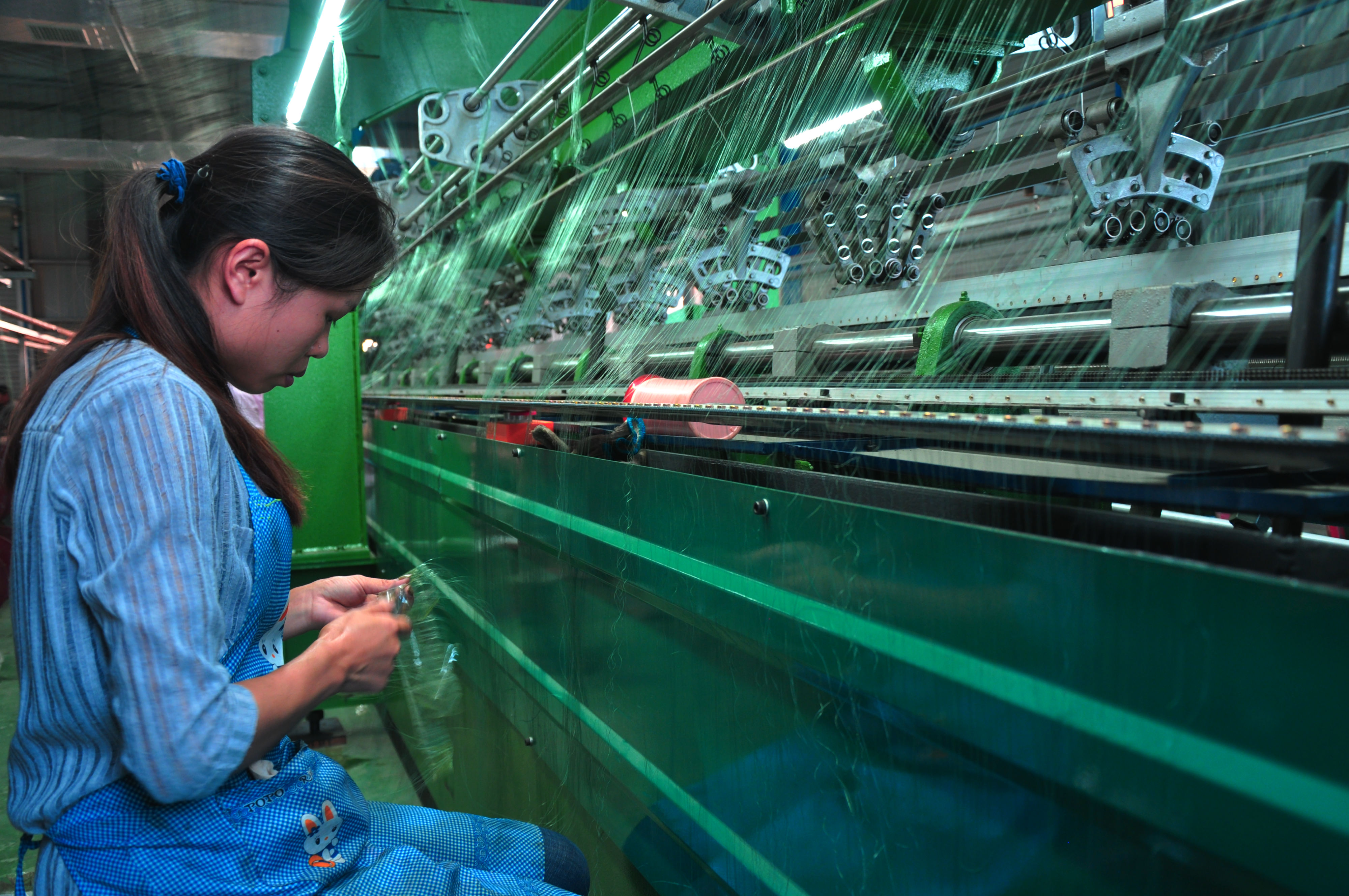 8月3日,一名女工正在魏集鎮(zhèn)張莊村“巧媳婦”企業(yè)——三聯(lián)漁網有限公司網布生產車間裁剪網線。據了解,該鎮(zhèn)大力發(fā)展?jié)O網編織、服裝加工、燈籠制造等產業(yè),把工廠辦到村頭,讓留守婦女和貧困群眾在家門口就能打工掙錢。