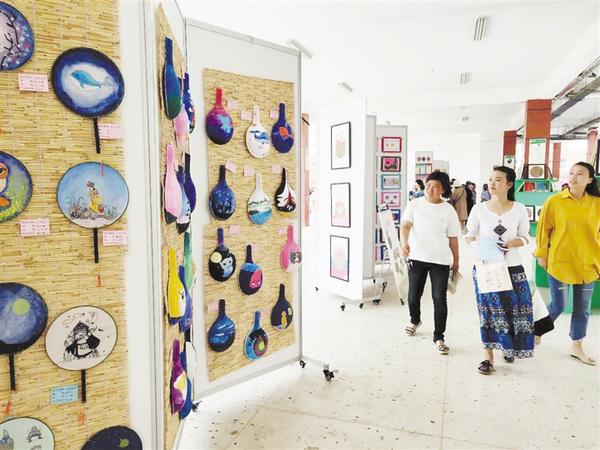 鄲城縣數(shù)萬名小孩子的暑假是多彩的,特色補(bǔ)習(xí)班、校園文化節(jié)、外出游山水等等,特別是校園文化節(jié),讓孩子們在手工制作、音樂、圖畫、舞蹈等方面各顯所長,并讓孩子們開闊了眼界。兩圖均為鄲城縣第二實驗小學(xué)校園文化節(jié)現(xiàn)場。記者 徐松 攝