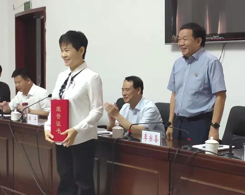 會(huì)上,與會(huì)領(lǐng)導(dǎo)向韓平女士頒發(fā)榮譽(yù)證書(shū)和榮譽(yù)獎(jiǎng)牌。受助學(xué)生代表作了發(fā)言。