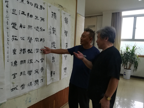 本報(bào)訊 8月21日下午,著名書法家王明周蒞臨周口報(bào)業(yè)傳媒集團(tuán)書畫院參觀指導(dǎo),并揮毫潑墨,留下珍貴墨寶。