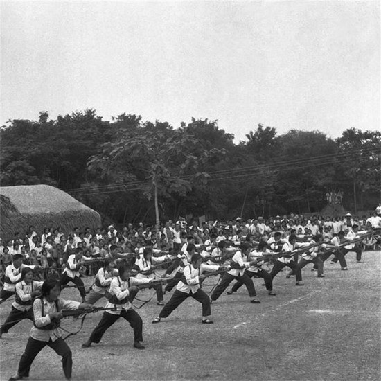 全民皆兵作為貫穿在毛澤東時(shí)代的一個(gè)最具中國特點(diǎn)的社會景觀,留下了許多值得回味的畫面。廣大農(nóng)民和工人亦兵亦民、亦工亦兵,拿起鋤頭是莊稼漢,走進(jìn)車間是工人,拿起槍桿就是一個(gè)兵。民兵訓(xùn)練在正規(guī)軍人的指導(dǎo)下利用農(nóng)閑時(shí)間,采取小型、就地、分散的方法進(jìn)行,主要訓(xùn)練課目有隊(duì)列、刺殺、步槍射擊、投手榴彈、簡易單兵戰(zhàn)術(shù)、站崗放哨等。
