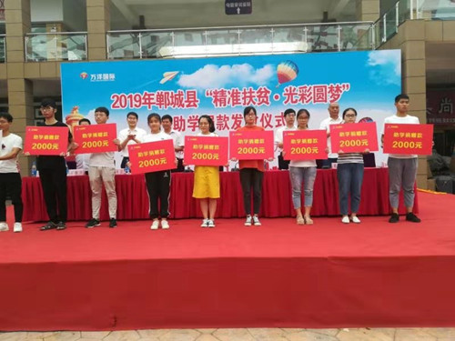 本次“精準(zhǔn)扶貧·光彩圓夢”由縣萬洋集團(tuán)慷慨解囊、傾情相助,共捐資20萬元,對100名品學(xué)兼優(yōu)的貧困學(xué)子給予資助,為鄲城的教育事業(yè)增光添彩。