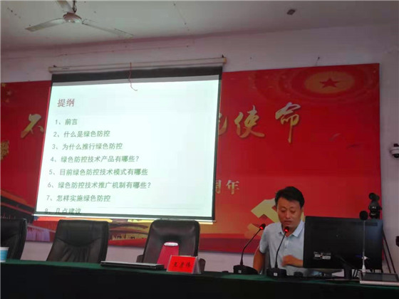 王彥偉教授深入淺出的向大家講述了我國農(nóng)業(yè)發(fā)展的基本方向、農(nóng)畜產(chǎn)品的加工和儲存、農(nóng)作物病蟲害綠色防控技術(shù)等內(nèi)容,并與學(xué)員們現(xiàn)場互動,為他們解難答疑;王教授還結(jié)合本地種植特點,用通俗易懂的語言向大家講解了小麥赤霉病、玉米螟蟲和大豆灰斑病等病蟲害的綠色防控理念和方法,這些防治病蟲害新的措施和方法低毒、無害、少污染,引起學(xué)員掌聲陣陣。大家紛紛表示,回去之后一定認真地進行實踐和推廣,爭取成為村里農(nóng)業(yè)方面的“秀才”和“專家”,為鄉(xiāng)村振興助力!