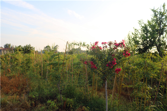 米杰是第一個(gè)嘗試吃螃蟹的田園綜合體追夢(mèng)人,這個(gè)在外打拼多年事業(yè)有成的豫東漢子,放棄了原本舒適的城市生活,于去年初回到老家大米行政村,通過(guò)流轉(zhuǎn)連片成方土地,栽植紫薇、紅梅、丁香、臘梅、石楠、海棠、櫻花、碧桃、無(wú)花果、蘋(píng)果、藍(lán)莓、石榴、冬棗等各類(lèi)喬木果樹(shù),并配套完成地下供排水管網(wǎng)和線纜埋設(shè)等現(xiàn)代化農(nóng)田設(shè)施,和鎮(zhèn)里已經(jīng)形成的萬(wàn)畝中藥材基地連成一片,形成規(guī)模效應(yīng)。朝著他心目中的“一田花、一片林、一灣水、一首詩(shī)、一幅畫(huà)”——惠濟(jì)灣田園旅游新高地闊步前行。