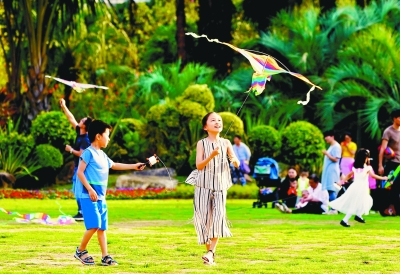 廣東深圳,兒童在公園里玩耍。光明圖片