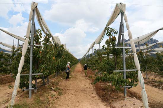 9月3日,工作人員在五蓮山—白鷺灣田園綜合體園區(qū)內(nèi)的豐沃現(xiàn)代農(nóng)業(yè)示范區(qū)內(nèi)管理果樹(shù)。