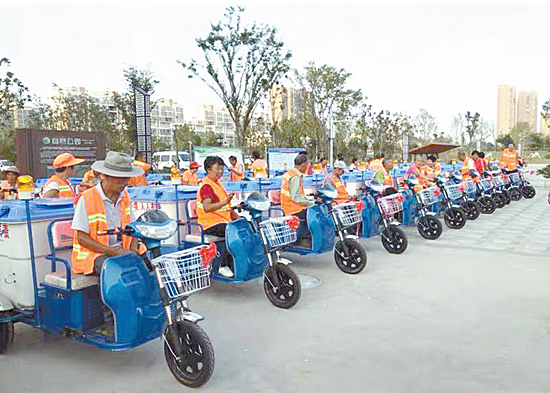 本報訊 9月6日下午,1000輛電動環(huán)衛(wèi)車在周口鐵路主題公園亮相。這些純電動的環(huán)衛(wèi)車將用于我市中心城區(qū)背街小巷的清掃工作。