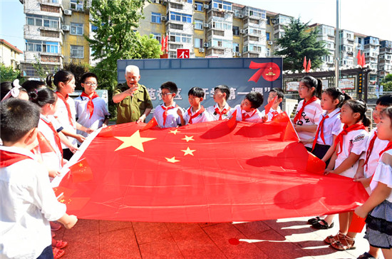 升旗儀式結束后,王文華為孩子講述國旗故事,一堂生動、鮮活的愛國主義教育課讓孩子們受益匪淺?!白8W鎳?,生日快樂”“祖國萬歲”……站在國旗下,聽著王文華的講述,孩子們情不自禁表達對祖國母親的祝福,有心的孩子家長拍下一張張孩子與國旗合影的照片,發(fā)在微信朋友圈,紅色主題的圖文得到一片點贊。