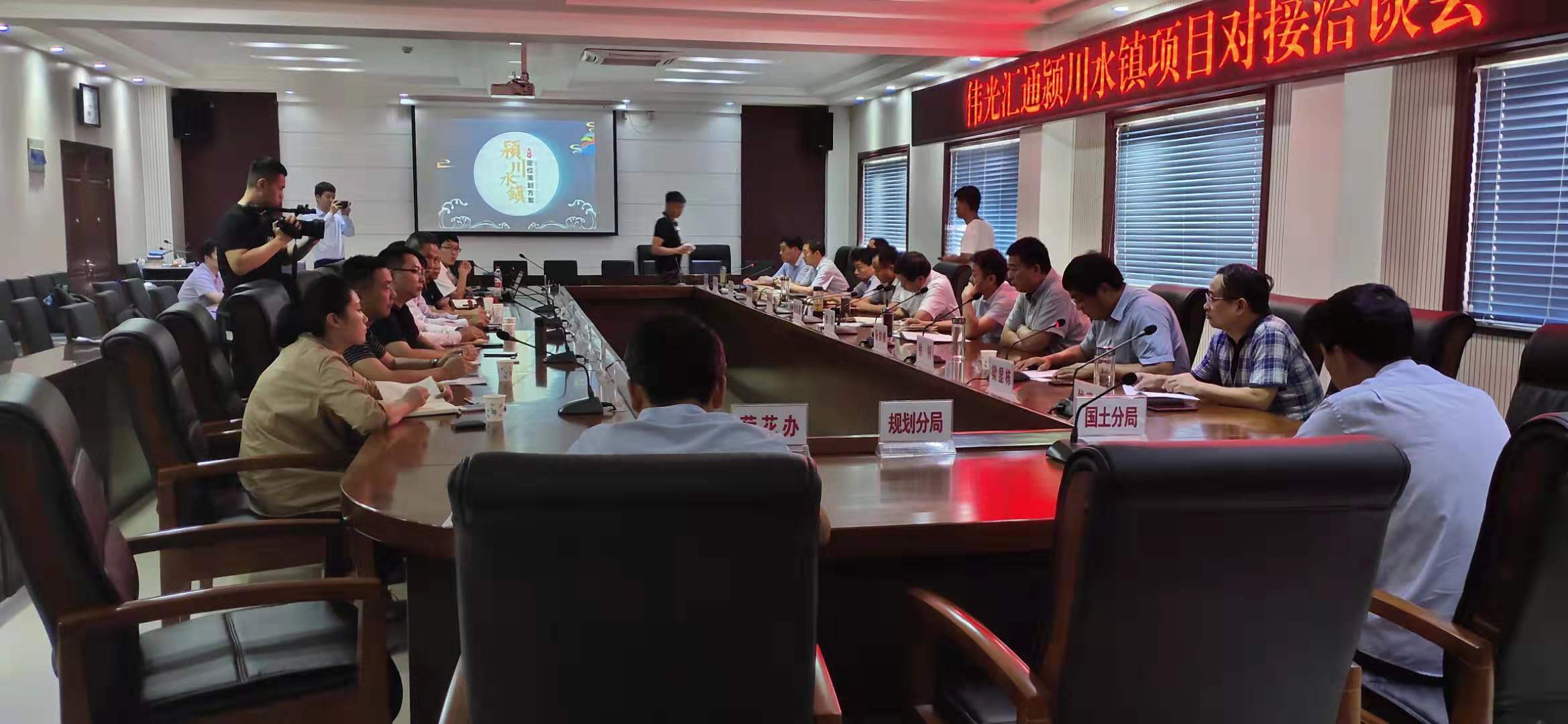 會(huì)議播放了偉光匯通企業(yè)宣傳片,聽取了潁川水鎮(zhèn)項(xiàng)目概念性策劃方案介紹。雙方圍繞潁川水鎮(zhèn)項(xiàng)目進(jìn)行了深入洽談交流。