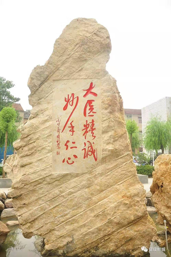 他雖然離開了鄲城,但一直關(guān)注著醫(yī)院的發(fā)展。醫(yī)院領(lǐng)導(dǎo)也多次到上??赐?,向他匯報(bào)醫(yī)院近年來的發(fā)展情況。2016年,鄲城縣人民醫(yī)院院長(zhǎng)于健到上??赐牭结t(yī)院近年來快速健康的發(fā)展進(jìn)程,周老先生非常高興,欣然提筆寫下“大醫(yī)精誠(chéng),妙手仁心”八個(gè)大字。周老先生的題詞被雕刻在一尊文化石上,座落在醫(yī)院文化廣場(chǎng)上。