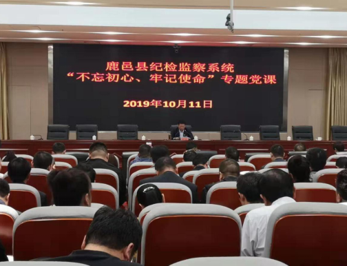 10月11日,鹿邑縣委常委、紀(jì)委書記、監(jiān)委主任韓林利用縣紀(jì)委監(jiān)委“不忘初心、牢記使命”主題教育集中學(xué)習(xí)時(shí)間以《砥礪初心本色 ,強(qiáng)化使命擔(dān)當(dāng),奮力推進(jìn)新時(shí)代紀(jì)檢監(jiān)察工作高質(zhì)量發(fā)展》為題為全縣紀(jì)檢監(jiān)察系統(tǒng)全體干部上了一堂生動(dòng)的專題黨課。
