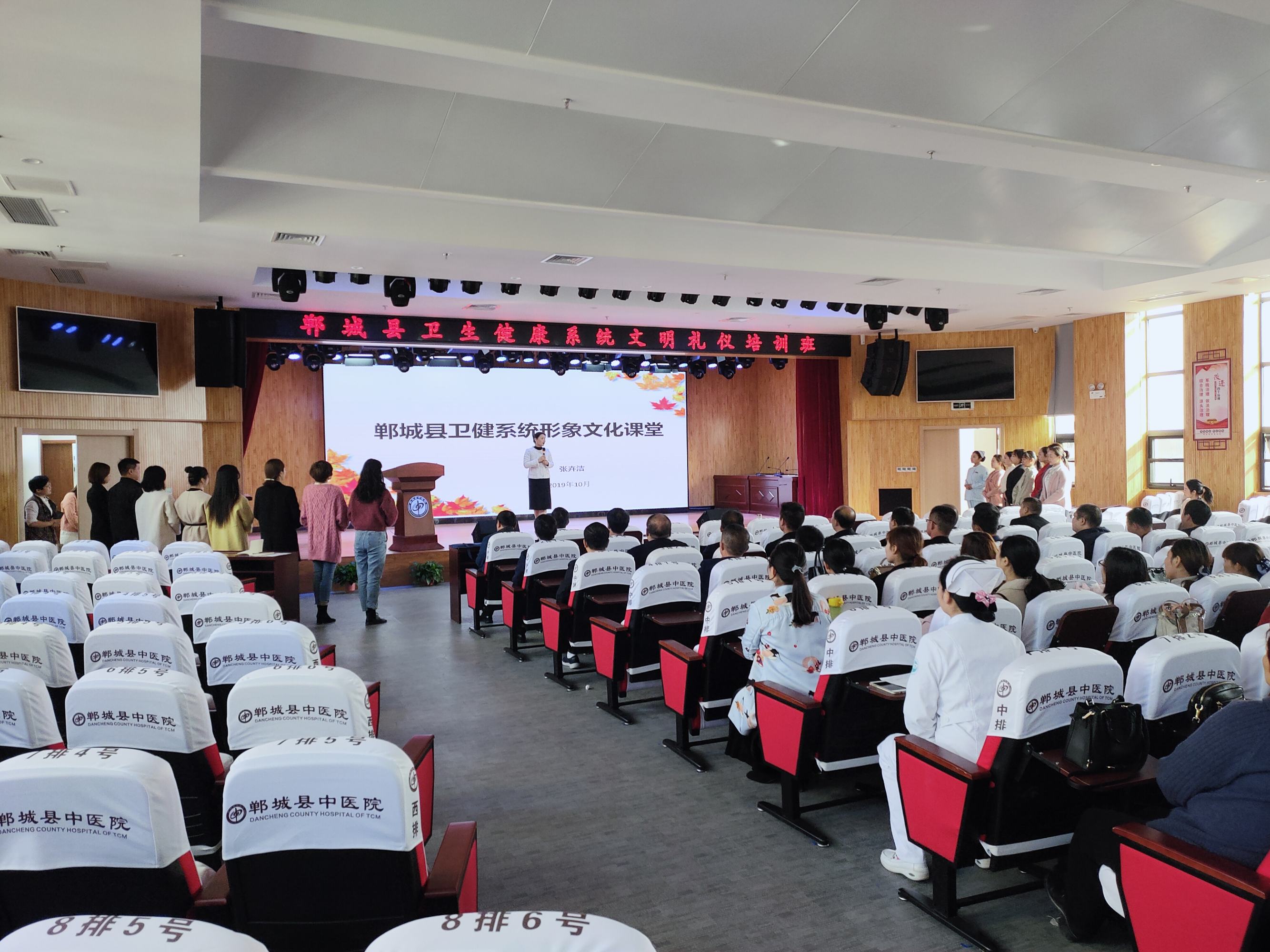 為一步提升全縣衛(wèi)健系統(tǒng)醫(yī)護人員綜合素質(zhì),打造鄲城衛(wèi)健系統(tǒng)形象新名片,10月28日,鄲城縣衛(wèi)健委在縣中醫(yī)院學術報告廳舉辦衛(wèi)健系統(tǒng)文明禮儀培訓班。四家醫(yī)療健康服務集團分管醫(yī)改、健康促進、健康扶貧副院長、護理部主任、護士長,各鄉(xiāng)鎮(zhèn)衛(wèi)生院院長、護士長和各單位選拔的講解員共計120多人參加了培訓活動。