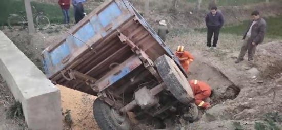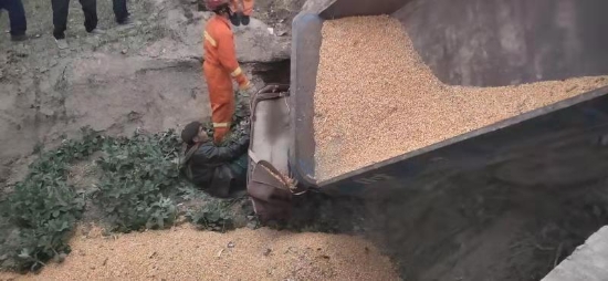接警后,鄲城消防大隊(duì)立即出動(dòng)3輛消防車15名指戰(zhàn)員前往處置。經(jīng)偵查發(fā)現(xiàn),側(cè)翻車輛是一輛農(nóng)用三輪車,車上拉有約2噸散裝玉米。現(xiàn)場(chǎng)玉米灑落一地,駕駛員約六十歲,左腿被農(nóng)用三輪車前輪壓住,無(wú)法脫身,加之即將天黑,當(dāng)時(shí)天氣較冷,如不及時(shí)處置,后果不堪設(shè)想。