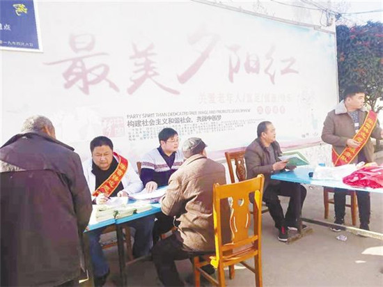 近日,項(xiàng)城市賈嶺鎮(zhèn)衛(wèi)生院學(xué)雷鋒志愿服務(wù)隊(duì)到該鎮(zhèn)敬老院開展義診活動(dòng),為老人免費(fèi)體檢。記者 楊光林 通訊員 黃國(guó)贊 攝