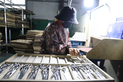 “我也是從小就外出,一直在江蘇蘇州發(fā)展,做刀剪十幾年了?,F(xiàn)在家鄉(xiāng)環(huán)境好,回來發(fā)展比在南方還有前途?!苯衲?9歲的陳政治老家是虎崗鄉(xiāng)陳莊村。被虎崗鄉(xiāng)黨委政府的誠意所感動,他很樂意回鄉(xiāng)發(fā)展,因為房租價格低、務工人員穩(wěn)定,營商環(huán)境又好,所以他帶著自己的外甥楊亞杰和技術團隊回到老家鄲城,還能助力家鄉(xiāng)經(jīng)濟發(fā)展。陳政治說,他的廠子所生產(chǎn)的東升、jack、亞寶等品牌刀剪全部銷往全國高檔理發(fā)店,產(chǎn)品供不應求。像這樣的高檔刀剪生產(chǎn)廠家,在中原地帶極少。剛投產(chǎn)幾個月,他已經(jīng)接到了來自韓國、日本等地的訂單。