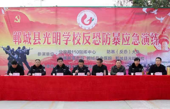 演練結束后,縣反恐辦主任、公安局副政委朱衛(wèi)兵說,此次演練貼近實戰(zhàn),既鍛煉了學校安保隊伍,又增強了師生安全防范意識,檢驗了光明學校切實可行的反恐防暴預案,進一步提高了學校反恐防暴等突發(fā)事件反應和處置能力。結合鄲城反恐實際,朱衛(wèi)兵強調(diào),要增強反恐防暴意識,提高政治站位,時刻繃緊學校反恐處突這根弦;要加強反恐隊伍建設,縣公安反恐隊伍要時刻保證黨和人民需要時拉得出,沖得上,打得贏,勇作為;要牢固樹立平安底線思維,嚴厲打擊暴恐犯罪行為;要充分認識做好應急處理突發(fā)性反恐工作的極端重要性,著力提高處置突發(fā)事件和暴恐行為的能力,增強師生反恐防暴意識;要進一步強化學校安保隊伍建設,努力打造一支素質(zhì)過硬、反應迅速、處置有力的應急處突精干隊伍。
