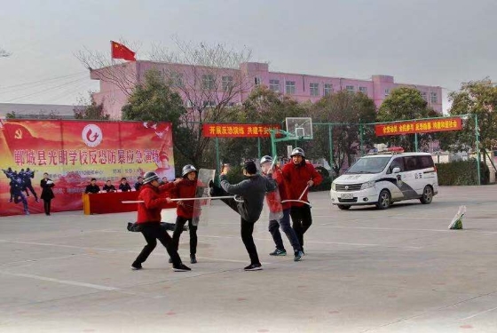 為切實做好“平安校園”建設工作,進一步增強全縣師生對突發(fā)暴恐事件的防范意識,提升在面對暴恐事件時自護自救及有效逃生避險能力,最大限度減少因突發(fā)暴恐事件對師生造成的傷害,提高學校安全保衛(wèi)應急處置和管理水平,12月20日上午,鄲城縣反恐辦組織相關單位在光明中學開展防暴恐知識培訓和演練。