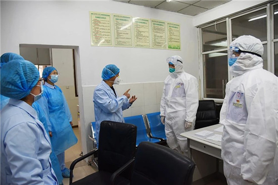 1月27日上午,鄲城縣人民醫(yī)院院長(zhǎng)于健、書記高飛身著隔離服深入到發(fā)熱門診隔離區(qū)、感染科隔離病房及診室,安排部署防控工作,指出:按照控感工作要求,為防止交叉感染,從即日起,發(fā)熱門診、感染科病房、CT室、放射科、檢驗(yàn)科等防疫一線工作人員,24小時(shí)工作在一線,直到疫情結(jié)束。