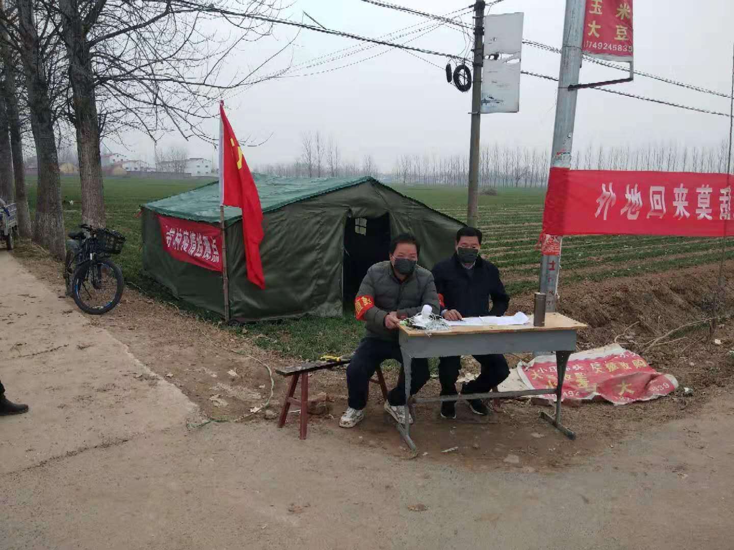由于物資未曾到位,檢測(cè)點(diǎn)僅簡(jiǎn)單搭了一頂四面透風(fēng)的帳篷,紀(jì)占東跟其他工作人員一起在寒風(fēng)中檢查登記出入人員、測(cè)量體溫,天氣寒冷,吃飯也只能用饅頭、泡面對(duì)付,但是內(nèi)心是火熱的。紀(jì)占東說在防控工作中,絕大部分群眾理解和支持的,有群眾在家里燒好開水給值班人員送,還有的群眾送來暖手寶、熱氣騰騰的飯菜......這些都是他工作的動(dòng)力和源泉。