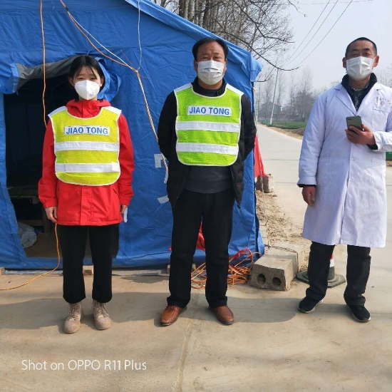 3月9日,春雨淅瀝,劉志杰仍在村口卡點冒雨堅守崗位。女兒劉苗苗此時正在村里登記排查,為村民測試體溫,父女倆一個內(nèi)防疫情輸入,一個外防疫情擴散,點上嚴(yán)管,面上嚴(yán)查,這感人一幕,將會深深印刻在任莊行政村村民們的腦海中!