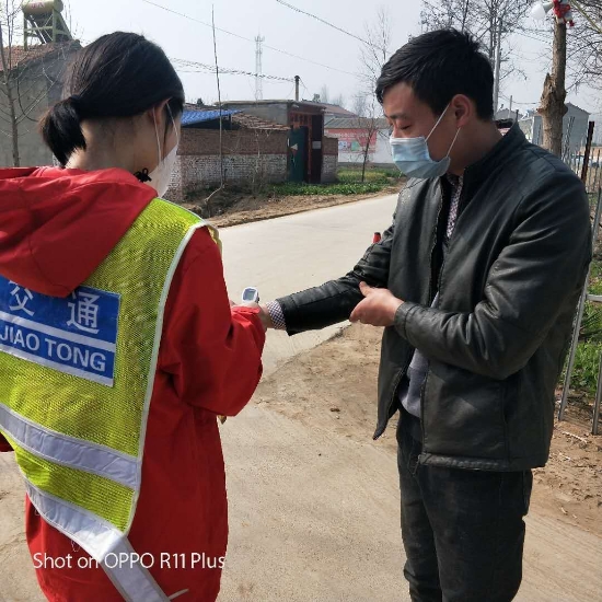 按照分工,劉苗苗在村防疫卡點負(fù)責(zé)村里疫情排查工作。為了做到排查不漏一戶、宣傳不漏一人,防控不染一人。她挨家挨戶、如同警察查戶口,嚴(yán)肅認(rèn)真。在排查中,她發(fā)現(xiàn)該村竟然有三人是從湖北武漢疫區(qū)回鄉(xiāng)人員,隱患不除,后患無窮。這三人成了她重點關(guān)注的對象。一天三次登門給他們測試體溫,勸誡他們在家隔離,自覺做到不出門、不串門,關(guān)心他人就是關(guān)心自己,一人不感染,全村都安全??吹揭幻髮W(xué)生冒著風(fēng)險服務(wù)大家都很受感動,村民們自覺在家防感染,沒有非法聚集、扎堆聊天等現(xiàn)象發(fā)生。