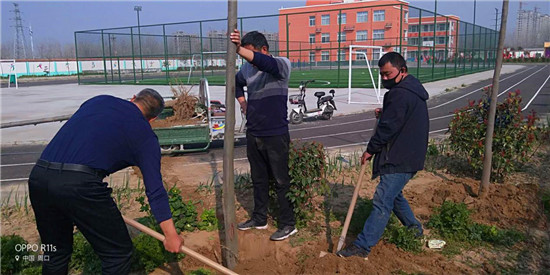 在學校老師的努力下,在蔣莊村干部群眾支持下,經(jīng)過10多天的辛勤勞動,蔣莊小學今年新栽植綠化樹、花木5000多棵(株),本來綠色盎然的校園又添新綠。