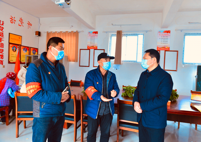 疫情就是命令。大年初一上午,寧平鎮(zhèn)王寨村支部書記張永亮在鎮(zhèn)政府接到任務(wù)后,就匆匆忙忙趕到村室與在縣里接到疫情防控命令趕來的縣公安局駐寧平鎮(zhèn)王寨村第一書記朱金光一起,迅速召開駐村隊員、三委班子和全體黨員會議,研究部署疫情防控措施,成立由支部書記、駐村第一書記雙任組長的疫情防控領(lǐng)導小組,吹響戰(zhàn)“疫”沖鋒號。