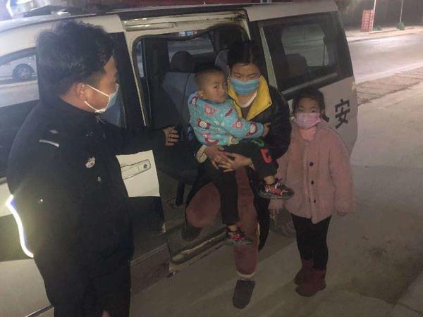 原來早在2月26日晚9點(diǎn)多,馬廠派出所民警劉華偉和輔警王以鶴、毛明陽例行夜間治安巡邏。在馬廠鎮(zhèn)黃莊行政村,他們遇到崔女士帶著兩個(gè)孩子求助,“俺孩兒有病了,快幫幫我們吧?!贝夼靠拗鴮?duì)民警說,她騎電動(dòng)車帶著孩子去看病,沒想到走到半路車沒電了。