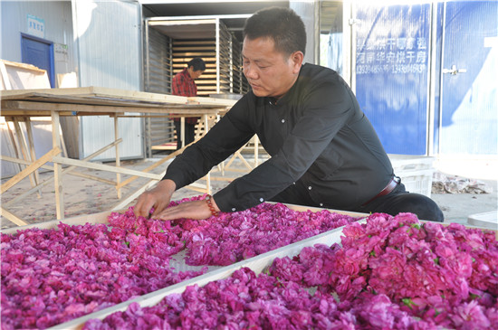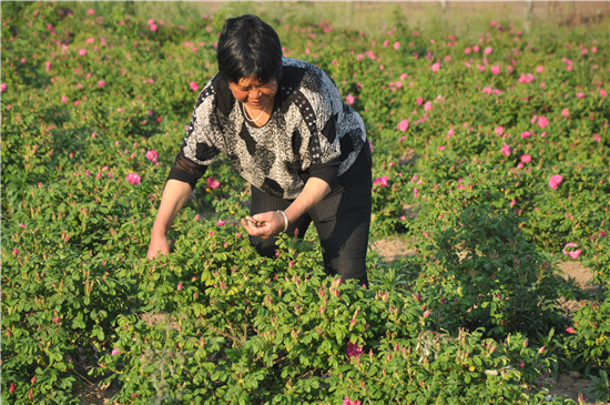 2015年,在昆明、鄭州等地從事花卉經(jīng)營(yíng)銷售十多年,積累了一定經(jīng)驗(yàn)和資本的劉軍停返鄉(xiāng)流轉(zhuǎn)土地種植藥用玫瑰400多畝,目前已到采摘期。這些玫瑰經(jīng)分揀、烘干等初加工后銷售到南方某醫(yī)藥公司進(jìn)行深加工,花農(nóng)每畝可收入7000元左右。