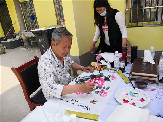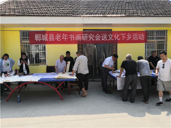 5月4日上午,鄲城縣汲水鄉(xiāng)押嶺行政村村室大院格外熱鬧,幾名書法家正被群眾團(tuán)團(tuán)圍住,原來是鄲城縣老年書畫研究會(huì)會(huì)長(zhǎng)曾慶祥帶領(lǐng)書畫名家來押嶺開展送文化下鄉(xiāng)活動(dòng)。