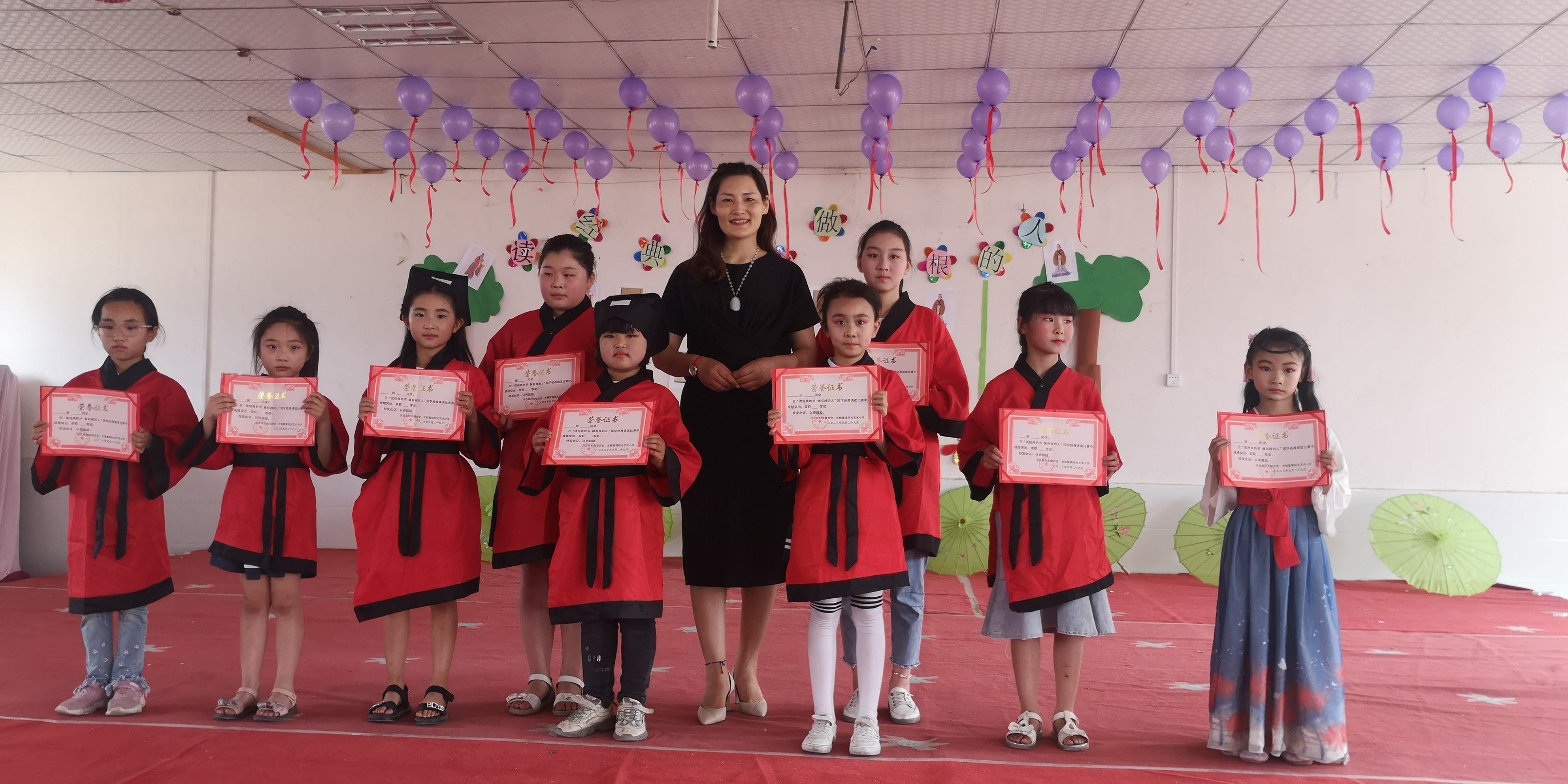 據(jù)悉,此次活動共有一至五年級9個班的學(xué)生參賽。各年級參賽選手選取了極具代表性的作品,形式多樣,氣勢恢宏,他們飽含深情的誦讀了《游子吟》、《弟子規(guī)》、《水調(diào)歌頭》、《詠柳》、《孝經(jīng)》、《我愛你,中國》、《論語十則》、《笠翁對韻》、《少年中國說》等經(jīng)典文章。小選手們個個身穿古裝漢服,神采飛揚(yáng),充分展現(xiàn)自我。他們用心演繹經(jīng)典,或慷慨激昂、鏗鏘有力,或低沉婉轉(zhuǎn)、深情吟誦,將對經(jīng)典的熱愛融入作品,將作品的藝術(shù)感染力和舞臺表現(xiàn)力展現(xiàn)得淋漓盡致,作品內(nèi)涵得以充分體現(xiàn)。